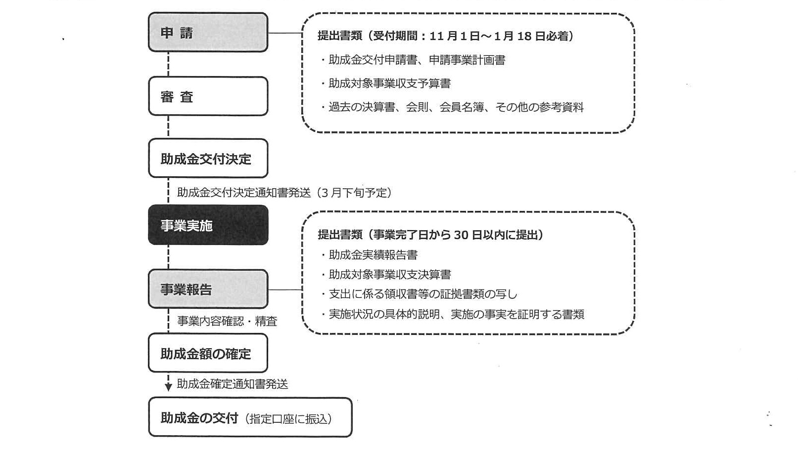 - 助成額 :助成対象経費の1/2以内で20万円を限度とする。